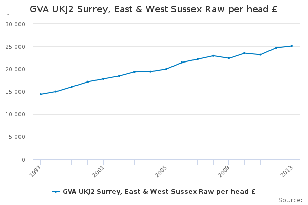 Download this time seriesGVA UKJ2 Surrey, East & West Sussex Raw per head £