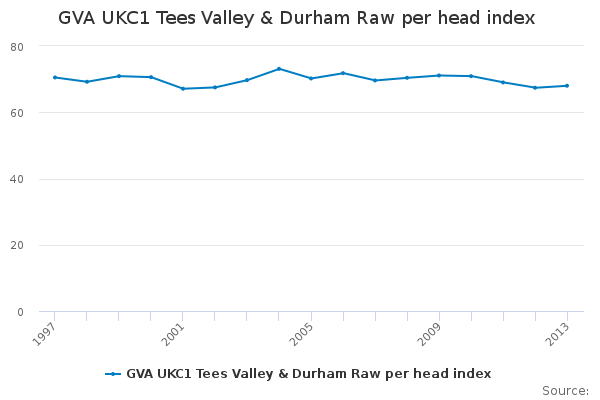Download this time seriesGVA UKC1 Tees Valley & Durham Raw per head index