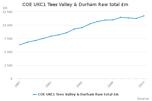 Download this time seriesCOE UKC1 Tees Valley & Durham Raw total £m
