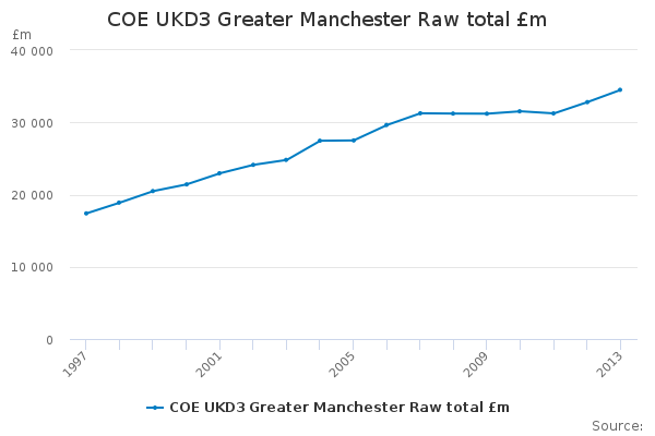 Download this time seriesCOE UKD3 Greater Manchester Raw total £m