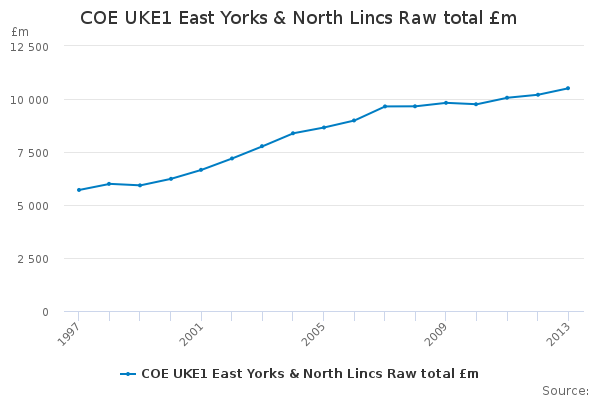 Download this time seriesCOE UKE1 East Yorks & North Lincs Raw total £m