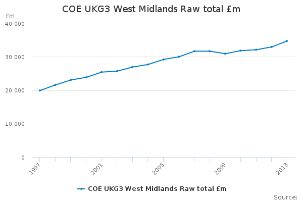 Download this time seriesCOE UKG3 West Midlands Raw total £m