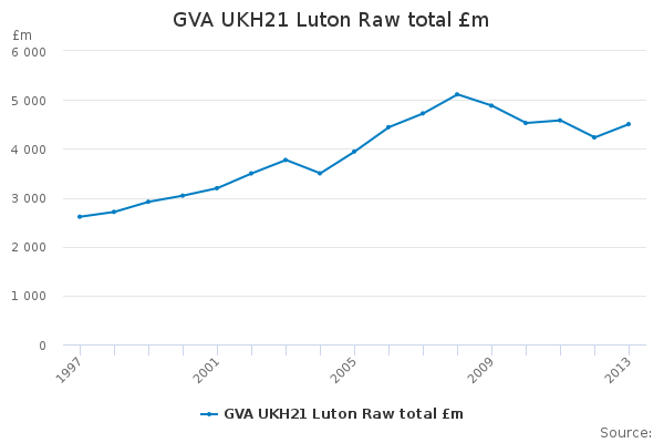 Download this time seriesGVA UKH21 Luton Raw total £m