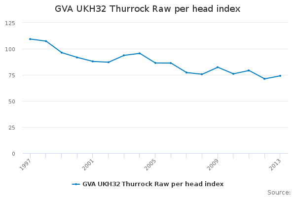 Download this time seriesGVA UKH32 Thurrock Raw per head index