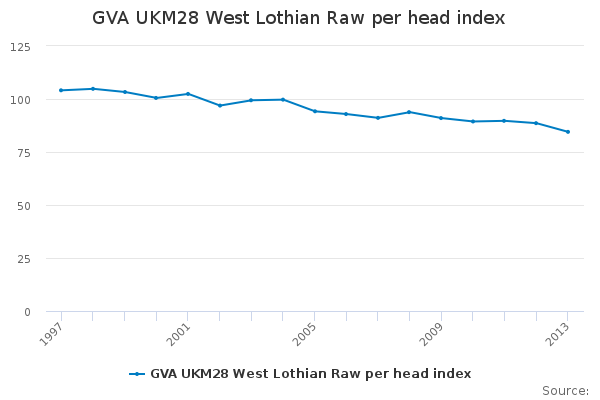 Download this time seriesGVA UKM28 West Lothian Raw per head index