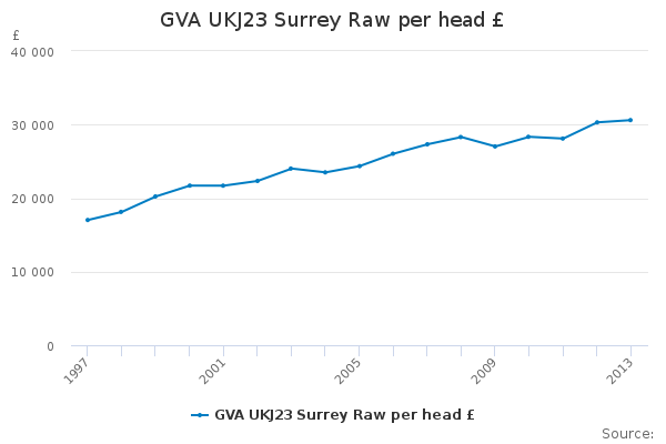 Download this time seriesGVA UKJ23 Surrey Raw per head £