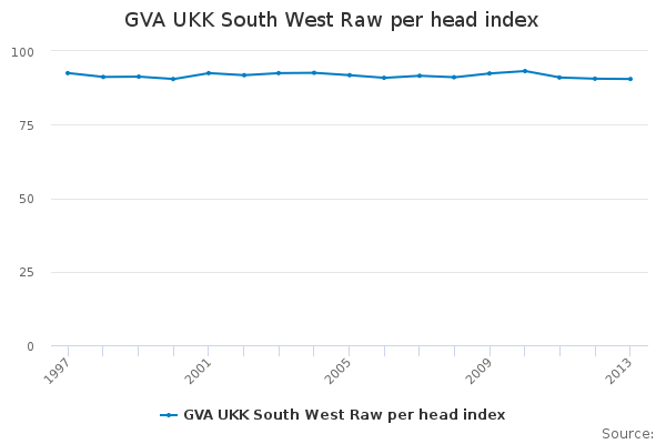 Download this time seriesGVA UKK South West Raw per head index