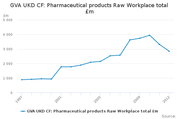 Download this time seriesGVA UKD CF: Pharmaceutical products Raw Workplace total £m