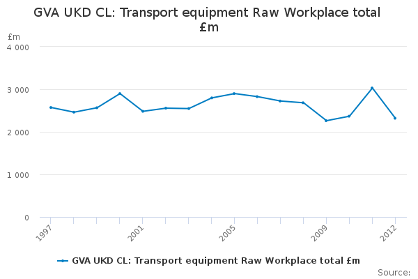 Download this time seriesGVA UKD CL: Transport equipment Raw Workplace total £m