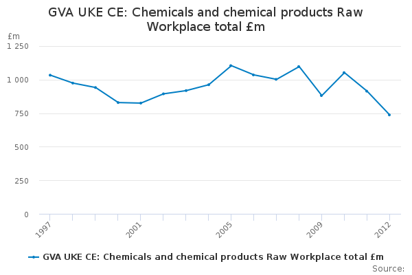 Download this time seriesGVA UKE CE: Chemicals and chemical products Raw Workplace total £m