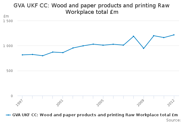 Download this time seriesGVA UKF CC: Wood and paper products and printing Raw Workplace total £m