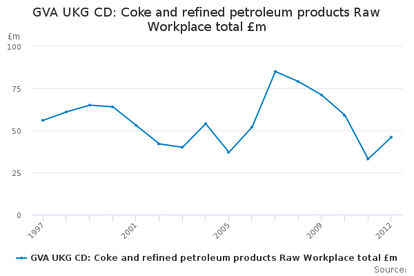 Download this time seriesGVA UKG CD: Coke and refined petroleum products Raw Workplace total £m