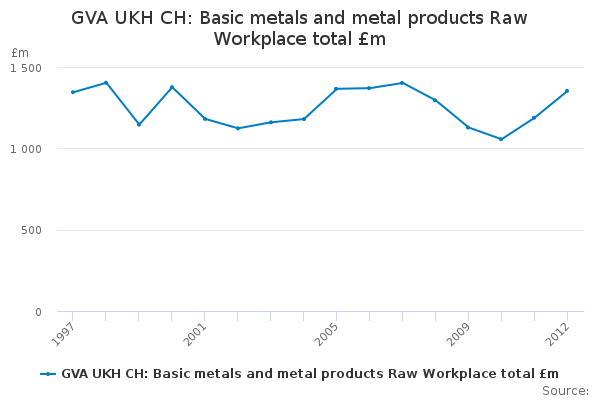Download this time seriesGVA UKH CH: Basic metals and metal products Raw Workplace total £m