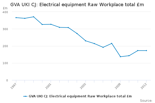 Download this time seriesGVA UKI CJ: Electrical equipment Raw Workplace total £m