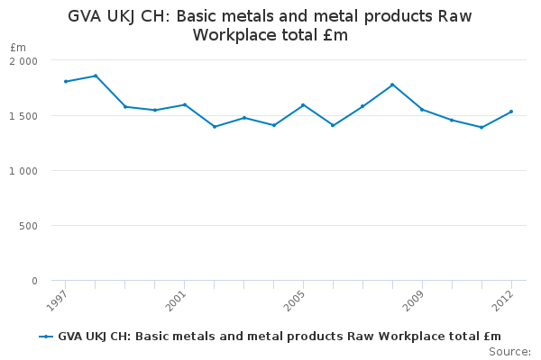 Download this time seriesGVA UKJ CH: Basic metals and metal products Raw Workplace total £m