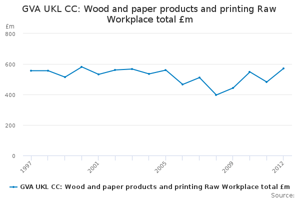 Download this time seriesGVA UKL CC: Wood and paper products and printing Raw Workplace total £m