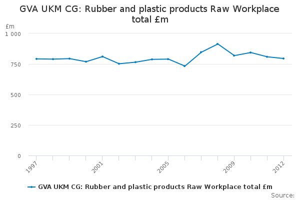 Download this time seriesGVA UKM CG: Rubber and plastic products Raw Workplace total £m