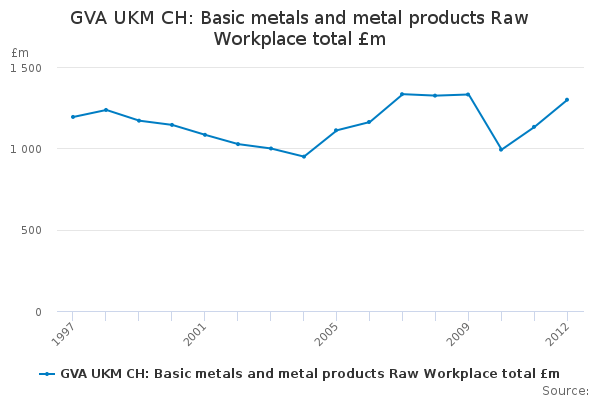 Download this time seriesGVA UKM CH: Basic metals and metal products Raw Workplace total £m