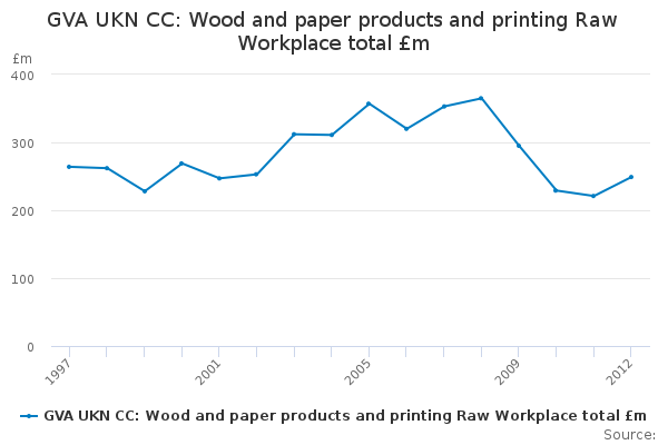 Download this time seriesGVA UKN CC: Wood and paper products and printing Raw Workplace total £m
