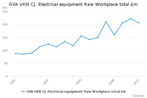 Download this time seriesGVA UKN CJ: Electrical equipment Raw Workplace total £m