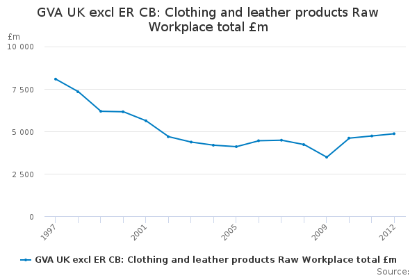 Download this time seriesGVA UK excl ER CB: Clothing and leather products Raw Workplace total £m