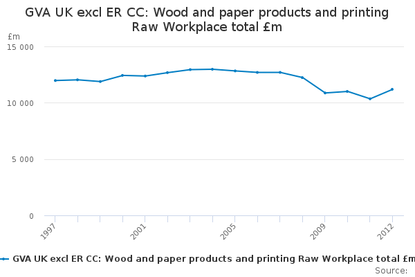 Download this time seriesGVA UK excl ER CC: Wood and paper products and printing Raw Workplace total £m