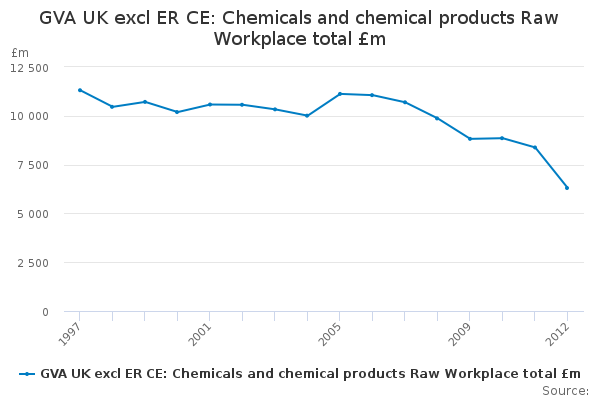 Download this time seriesGVA UK excl ER CE: Chemicals and chemical products Raw Workplace total £m