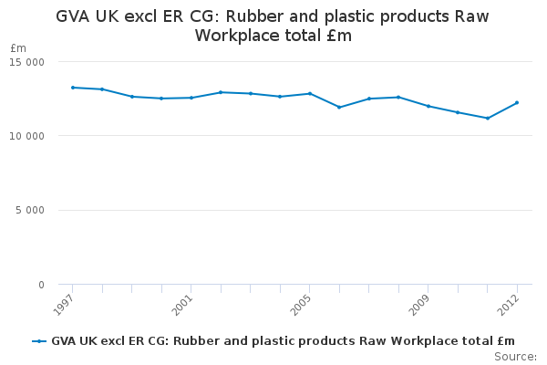 Download this time seriesGVA UK excl ER CG: Rubber and plastic products Raw Workplace total £m