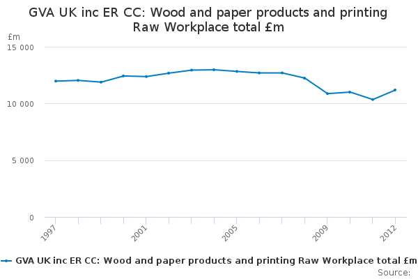 Download this time seriesGVA UK inc ER CC: Wood and paper products and printing Raw Workplace total £m