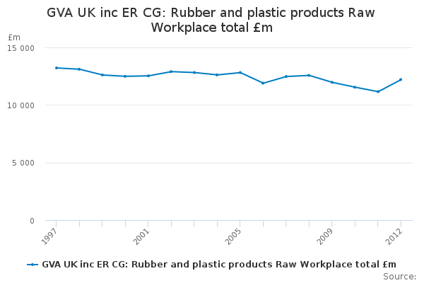 Download this time seriesGVA UK inc ER CG: Rubber and plastic products Raw Workplace total £m