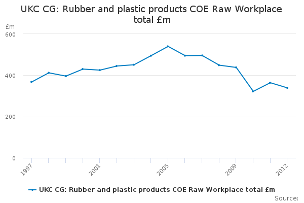 Download this time seriesUKC CG: Rubber and plastic products COE Raw Workplace total £m