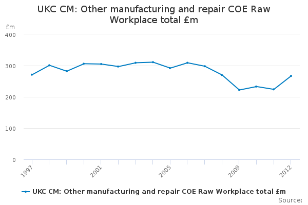 Download this time seriesUKC CM: Other manufacturing and repair COE Raw Workplace total £m