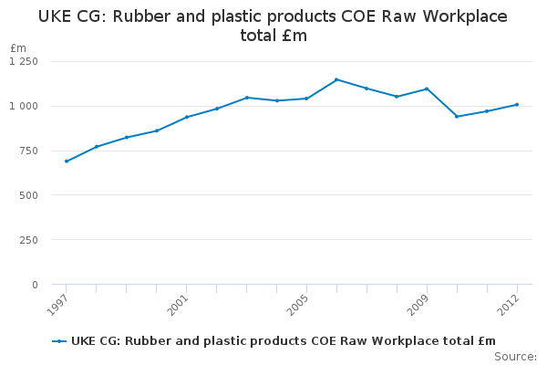 Download this time seriesUKE CG: Rubber and plastic products COE Raw Workplace total £m