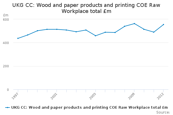 Download this time seriesUKG CC: Wood and paper products and printing COE Raw Workplace total £m