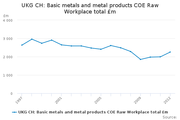 Download this time seriesUKG CH: Basic metals and metal products COE Raw Workplace total £m