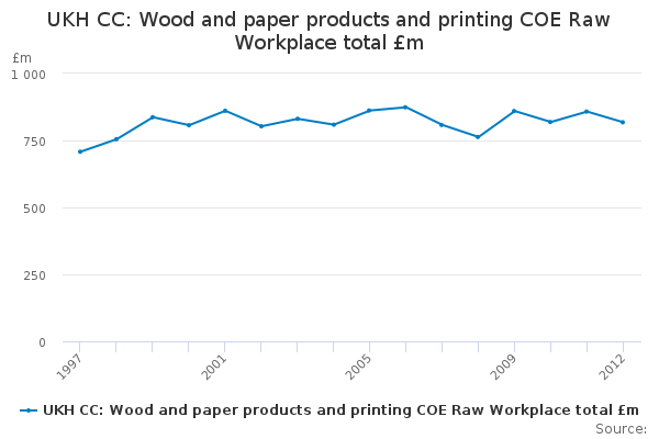 Download this time seriesUKH CC: Wood and paper products and printing COE Raw Workplace total £m