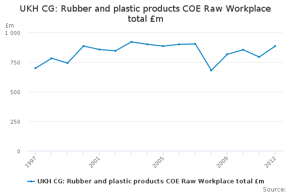 Download this time seriesUKH CG: Rubber and plastic products COE Raw Workplace total £m