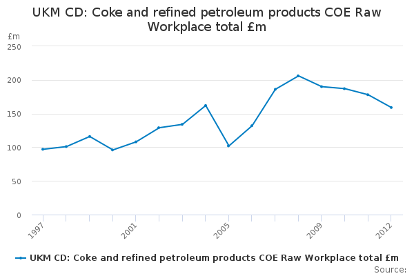 Download this time seriesUKM CD: Coke and refined petroleum products COE Raw Workplace total £m