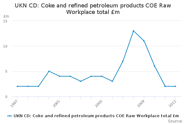 Download this time seriesUKN CD: Coke and refined petroleum products COE Raw Workplace total £m