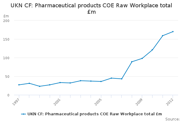 Download this time seriesUKN CF: Pharmaceutical products COE Raw Workplace total £m