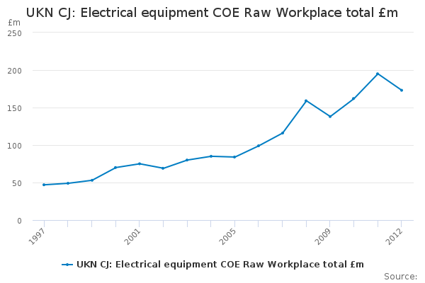 Download this time seriesUKN CJ: Electrical equipment COE Raw Workplace total £m