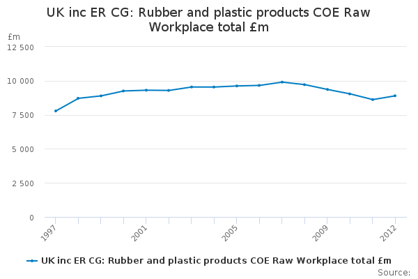 Download this time seriesUK inc ER CG: Rubber and plastic products COE Raw Workplace total £m