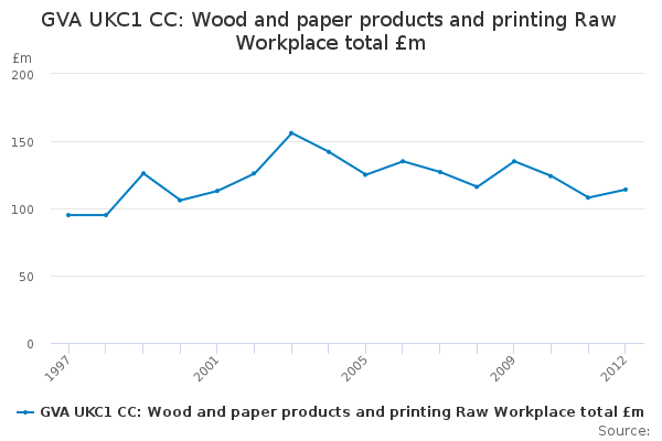 Download this time seriesGVA UKC1 CC: Wood and paper products and printing Raw Workplace total £m