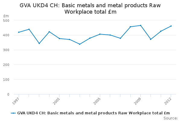 Download this time seriesGVA UKD4 CH: Basic metals and metal products Raw Workplace total £m