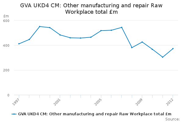 Download this time seriesGVA UKD4 CM: Other manufacturing and repair Raw Workplace total £m