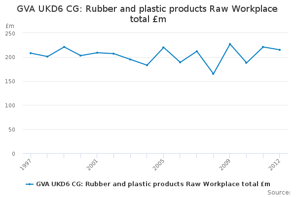 Download this time seriesGVA UKD6 CG: Rubber and plastic products Raw Workplace total £m
