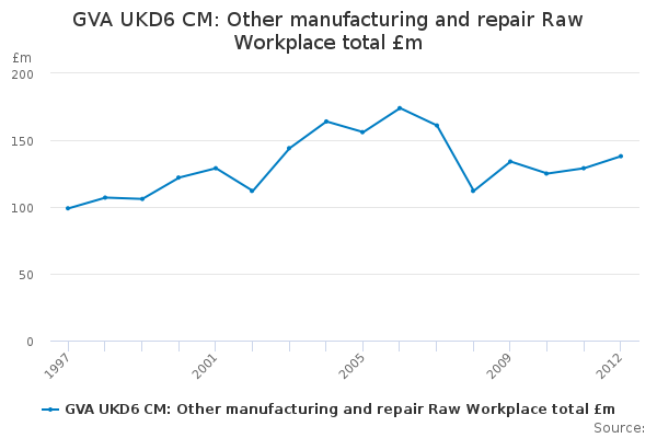 Download this time seriesGVA UKD6 CM: Other manufacturing and repair Raw Workplace total £m