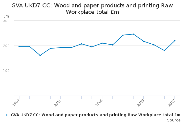 Download this time seriesGVA UKD7 CC: Wood and paper products and printing Raw Workplace total £m