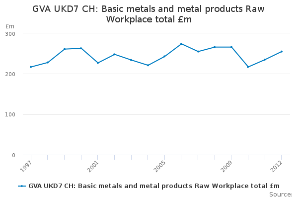 Download this time seriesGVA UKD7 CH: Basic metals and metal products Raw Workplace total £m