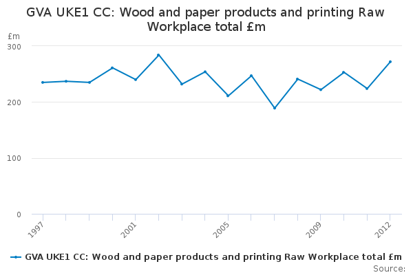 Download this time seriesGVA UKE1 CC: Wood and paper products and printing Raw Workplace total £m